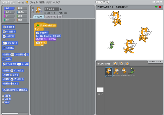 ・簡単なゲーム(「ネコから逃げろ!」を作ってみよう